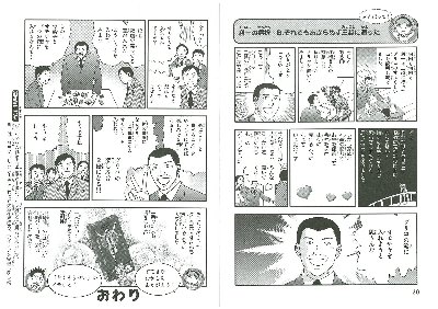 漫画冊子は現在まで三人物・三種類が発行されていて、昨年登場した第一弾は江崎グリコの創業者「江崎利一」氏にスポットをあてて、生い立ちから栄養菓子「グリコ」誕生までの道のりを描いている。また今春出た第二弾は大和ハウスの創業者「石橋信夫」氏で、あきらめずに夢を追い続け成功した人生を。第三弾はシャープの創業者「早川徳次」氏でシャープペンシルを発明しての大成功、関東大震災により全てを失った後、ラジオで再起、新しいものを生み出し続ける姿が漫画化されている。