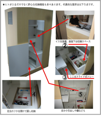 また、現在は先の震災の影響によって家族の絆を求める意識も高まっている。そこで、低コストでパーソナルスペース(書斎)が実現する家具によって、が「一分一秒でも早く帰宅したい」と思える家づくりのきっかけになればという想いから、子どもが遊びでタンスに隠れる様子をヒントに、「親爺のかくれんぼタンス」を製作したという。