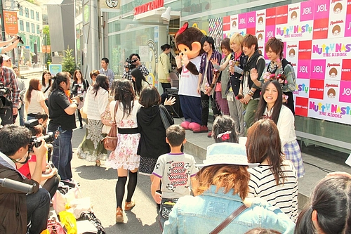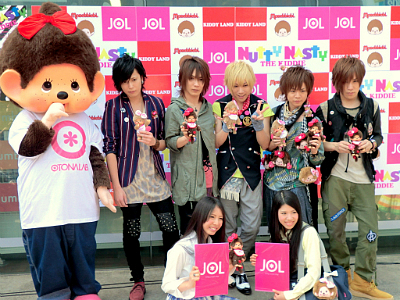 この新しいモンチッチの発表記念イベントが、5月14日、東京・原宿のキデイランド原宿店キャットストリート店頭で開催された。しかもこの日、ゲストとしてイケメン・カワイイ男子代表のロックバンド「THE KIDDIR(キディ)」を迎え、もちろんオトナ*ラボに登録する女子高生(JOL)のメンバー、さらにモンチッチちゃんも応援に駆けつけて、店周辺には200人を超えるファンが集まった。