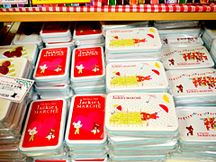 また「ジャッキーズマルシェぬいぐるみ」(2,415円)は、初回限定でオープンの日付入りでお店のショッパーを持っているのがかわいい。キャンディ缶(全8種、609円)は、食べた後に小物入れや名刺入れなどとしても使えそう。さらに、ステーショナリーやお弁当グッズ、この時期に重宝する折りたたみ傘などがズラリと並ぶ。