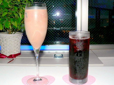 ちなみに店長であるらびちゃん、ゆあちゃん2人のおすすめはらびちゃん→「ゴディバチョコレートカクテル」(写真左、300円※飲み放題には含まれてません)、ゆあちゃん→「使徒襲来!」(写真右、らびちゃん命名)。