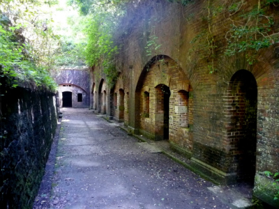 第3砲台の将校宿舎がある奥に見えるトンネルをくぐると思わず息をのみました。まさにラピュタ、遺構にあの背の高いロボットが置いてありそうな、歩いていそうな雰囲気が漂っていたのです。
