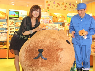 そして、開店に先立ち、オープン前日には“カピバラさんファン”を公言するタレント「中野風女シスターズ」のメンバーである原田まひるさんが来店した。たくさんのカピバラさんグッズに囲まれ、原田さんはとても喜んだ様子だった。