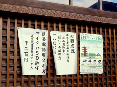 また、本堂の境内では、電気・電波関係のお守りや「携帯電話用2ギガ マイクロSD御守」も見かけました。電気自動車やハイブリッド車などのお祓いまで受け付けているそうです。