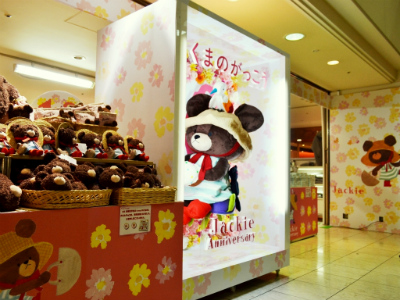 女性を中心に人気の高い絵本キャラクター「くまのがっこう」が、2012年に10周年を迎えるのに合わせて『ジャッキー 10th アニバーサリー』イベントが大阪・梅田で開催されている。今だけの「ジャッキーカフェ」も登場し、初日から待ちわびた女性ファンらが会場に駆けつけて賑わっている。