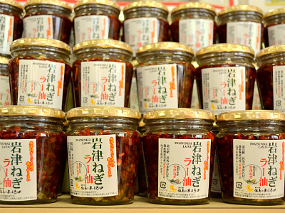 同じ朝来市の「但馬のまほろば」でも、岩津ねぎを使ったグルメが豊富。一時のラー油ブームで注目を集めた『岩津ねぎラー油』(525円)をはじめ、『岩津ねぎスープ』(500円)は道の駅オリジナル。