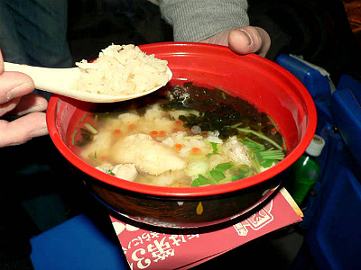 前回銅メダルだった鯛茶漬け。鯛めしの上に鯛のなめろう、鯛の香り揚げが乗っかり、そこに出汁が。美味いに決まってます。上記写真でも分かるようにレンゲの上に茶漬けってない鯛めしを乗せて、鯛めしオンリーも楽しませるという東京ドームスペシャルバージョンの一工夫の嬉しい。そしてもちろん、おいしー!!でした。