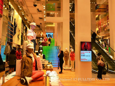表の外観はガラス張りで、約300体ものマネキンが回転し、デジタルサイネージを多用するなど、日本のユニクロと似ているような似ていないような。しかし、赤に白文字の「ユニクロ」「UNIQLO」はここでも健在。店内に入ると、並んでいる商品は日本とそれほど差はないものの、広い空間を生かして商品が並べられ、飾られていて、スケールの大きさを感じました。そして、ヒートテックの商品を並べたフロア、高級感ある「+J」の売り場も。