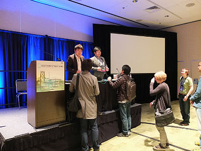 「特に、創業間もない会社supernovaが、ほとんど資金ゼロの中、1年間でいろいろな会社さん、大学や優秀な人材とコラボをして、新たなGPSゲームを京都で展開していった内容を話しました。聴衆の手ごたえは”さすがアメリカ”で、終わった後などは拍手喝采でしたし、質問も矢継ぎ早に出ました。スウェーデンや中国、東南アジアなど国はさまざまです」