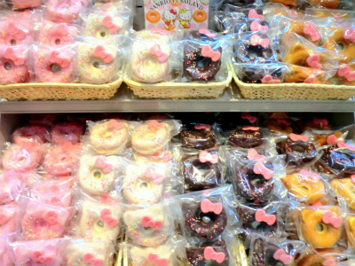 同店のオススメ商品は「ハローキティドーナツ」(プレーン210円、チョコ・ストロベリー・ホワイト各230円)。サンリオピューロランドで人気の焼きドーナツが東京駅にも登場し、オープンして早くも大好評となっている。特に、リボンのチョコプレートとてもかわいく、おみやげとしてとても喜ばれそうだ。