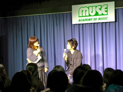 会場は代々木の専門学校のホール。観客は150名の定員をはるかに超え、立ち見がでる程の超満員。イベント初回から発売2日でSOLD OUTという反響。この日訪れたお客さんも高校生グループ、10代、20代の独身女性、3歳児を連れた母子、中年の夫婦、男子お一人など様々な年齢層だ。