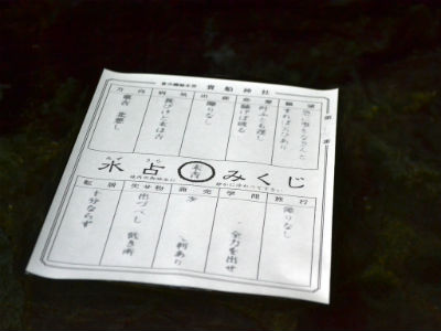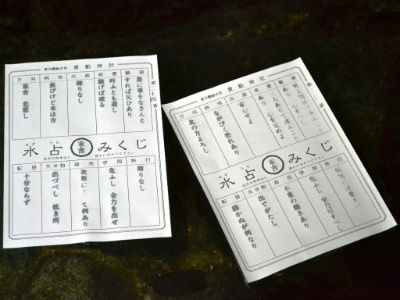 この貴船神社でぜひチャレンジして欲しいのが「水占みくじ」(200円)。白紙のおみくじを境内にあるご神水に浸すと、なんと文字がどんどん浮かび上がってきた。結果は“末吉”。なんとも微妙な内容が書かれてあったが、水からおみくじを取り出してしばらく経つと乾いてきて、また文字が見えなくなってきて驚いた。