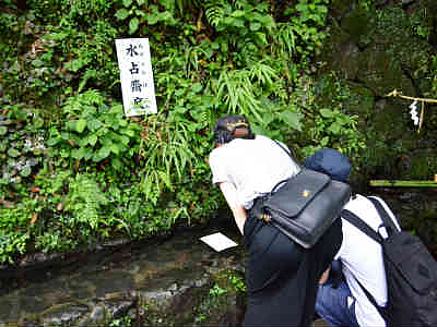 まるで、水の神様のお告げを受けたかのような、不思議な体験ができる貴船神社の水占みくじ。となりで、その結果に一喜一憂するカップル、女性たちが盛り上がっていた。