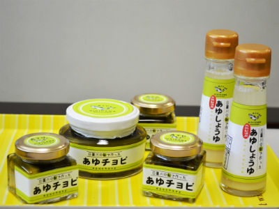 あゆチョビは(大)3150円/(小)735円、あゆしょうゆは735円。問い合わせは、日置川ふるさと物産センター(0739-52-3878)まで。