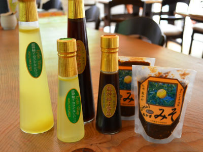 また「龍神柚子カクテルシロップ」(300ml 1050円/120ml 525円)、「龍神柚子醤油」(300ml 1050円/120ml 525円)、龍神柚子みそ(300g 525円)などのゆず製品もある。カフェで味わえるものもあり、好みで選んでみてもいいかもしれない。