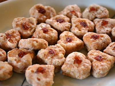 特に、ハート型のかりんとうは見た目もとてもかわいくてお土産としても喜ばれそう。油で揚げずにおからや米粉、国産小麦などを使って作り上げているので、アレルギーを持つ子どもでも食べることができる。これらの商品は、龍神村に住む子育て中の若い母親たちが手作りしている。ごんぱち、番茶、よもぎなどの味もある。