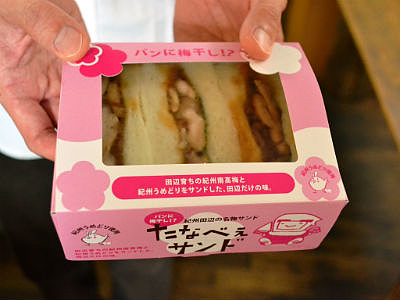 パンに梅干、という組み合わせがなかなか想像しがたいが、今、紀州田辺の名物サンドとして売り出し中なのが『たなべぇサンド』だ。梅干の王様といわれる紀州南高梅と、梅成分で育てられた紀州うめどりをパンにはさみ、地元のカフェやレストランなどで味わうことができる。