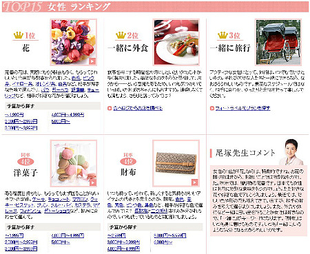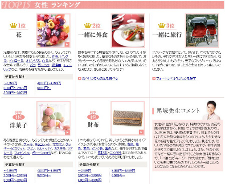 例えば、男女別に紹介されている「敬老の日に欲しいものランキング」。いわゆる「品物」ではなく、「一緒に外食」「一緒に旅行」といった、時間を一緒に過ごしたいという願望が男性、女性とも上位にランクインしています。