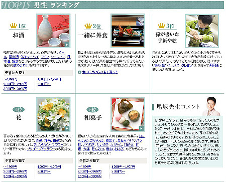 価格.com 「敬老の日に欲しいものランキング」TOP15