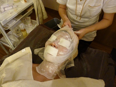最初は老化角質を取り除いたりミストにあたりながら、リンパマッサージを受けたり、保湿したり…