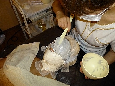 最初に目と口にガーゼを置かれて、その後石膏を塗っていくんだけど…すごく不思議(*_*)