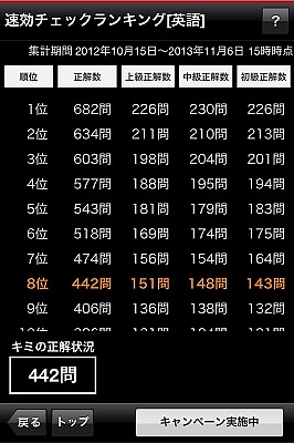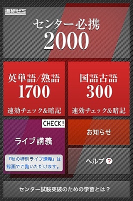 無料でダウロード出来るベネッセの学習アプリ「進研ゼミセンター必携2000」(iPhone/iPod touch/iPad対応)を活用した企画でこのアプリには、センター試験の出題傾向から厳選した英語・古語2000語が収録されている。今回はなんと、全員で競い合いながら全問正解を目指すことが出来る「ランキング機能」を追加。全国の受験生とモチベーションを高めながら単語を覚えていくことが出来る。