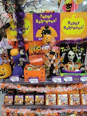 そして今年、キデイランド原宿店では1階にハロウィーンのコーナーを設置。パーティーを盛り上げるグッズやコスチュームをはじめ、子どもたちから“Trick or Treat”(なんかくれ。さもなきゃ悪さするぞ!)と言われると“Happy Halloween!”と応えてお菓子を渡す、ハロウィーン行事に欠かせないかわいいお菓子などがそろう。