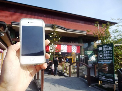 まず、 “嵐電”の愛称で知られる京福電鉄の四条大宮駅で「仮面ライダーウィザードプロマイド型スタートキット」(500円)を購入。自分のiPhoneでスタートキット裏面にあるQRコードを読み取ると、仮面ライダーウィザードが画面上に登場してストーリーを語りかけてきた。なお、一緒に京福電鉄1日乗車券も買うことをおすすめする。