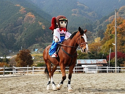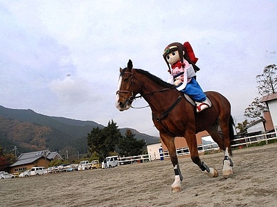 一方、ご当地キャラで乗馬といえば、熊本県の“営業部長”「くまモン」が有名。くまモンは2012年夏、阿蘇での乗馬に挑戦した。今回、蓮花ちゃんが乗馬に挑戦したのは、これまでたびたび“クマ”に襲われる事件に遭遇しているのを意識してかどうかは不明。ちなみに、くまモンは友綱を引いてもらっての乗馬だったが、蓮花ちゃんは1人で乗りこなした。