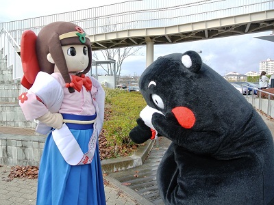そして、12月1日に兵庫・三田市で開催された「ゆるキャラ(R)大集合inさんだ」の会場で、蓮花ちゃんを前になにやら戸惑うくまモンの姿が見られた。「くまモン大阪出張紀行」などによると、自らの乗馬体験を報告した蓮花ちゃんに、 くまモンは「うん?(ポリポリ)蓮花ちゃんが(モグモグ)乗馬得意だー(ポリポリ)言うモンで。」と、少々“クマった”様子だったという。