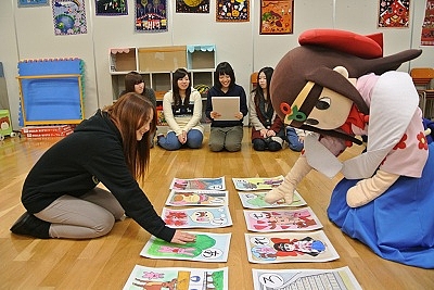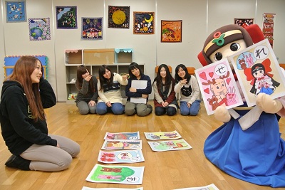 1月10日、蓮花ちゃんは、奈良市にある奈良文化女子短期大学を訪問した。キッカケは、同大学の「カルタ遊びと子ども文化」ゼミが制作したいろはかるたの“せんとくんカルタ”。せんとくんに片思い中の蓮花ちゃん、新聞でこのカルタの存在を知ったという。