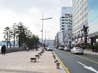 約1kmものストリートには、韓国でおなじみのカフェチェーン「Angel-in-us Coffee」「TOM N TOMS COFFEE」、「CAFFE PASCUCCI」などをはじめ、「スターバックス・コーヒー」「ロッテリア」も並んでいる。そして、ほぼすべてのカフェにテラス席があり、コーヒーを片手に海からの心地よい風を感じながら、ステキな景色を眺めることができる。