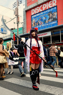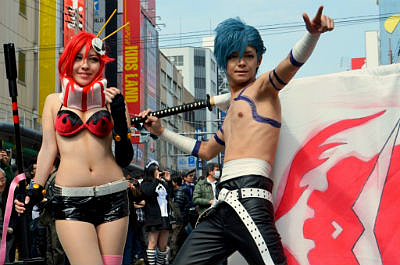 日本橋のメインストリート、日本橋筋商店街(堺筋)が歩行者天国となり、たくさんのコスプレイヤーたちが集結した。人気のアニメキャラやゲームのヒーローたちをはじめ、中には、日本人のみならず、映画「パイレーツ・オブ・カリビアン」のジャック・スパロウに扮する外国人のコスプレイヤーらも登場。老若男女たくさんの人々がカメラを向ける中、ポーズを決めていた。
