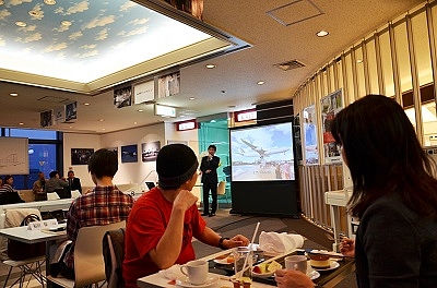 先の3月23日、セミナー「楽しさ満載!飛行機で旅するマメ知識」が開催された。事前に申し込んだ40名の中には、東京から飛行機で駆けつけた人、鳥取から車でやってきたグループ、アメリカからの帰国時に途中降機(ストップオーバー)を利用して参加した女性もいた。ビジネスクラスの機内食を味わいながら、シェフによる料理の説明やエールフランス航空担当者による“飛行機のトリビア”などを聞き、より飛行機での旅の楽しさがより深まったようだった。「同じKLMオランダ航空でもエコノミークラスの料理よりもやはりおいしい」「エールフランス航空の機内食はさすがフランス、お皿への盛り付け方なども“洗練”されている」などの感想も聞かれた。