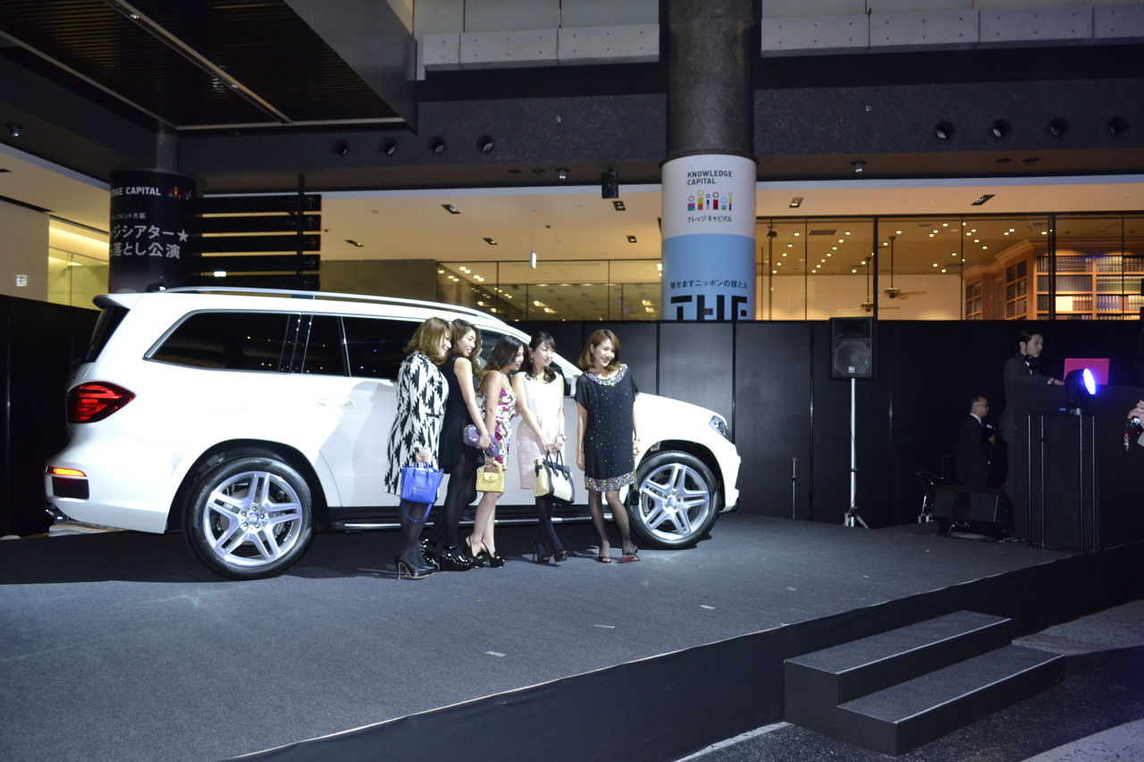 「新たなる価値の融合」をテーマにしたパーティーは、確かに今までにないパーティー仕様。同日に発表されたメルセデス・ベンツ新型GLクラスのみならず、多様なラインナップが会場に並び、その前では撮影会も開催される盛況ぶり。