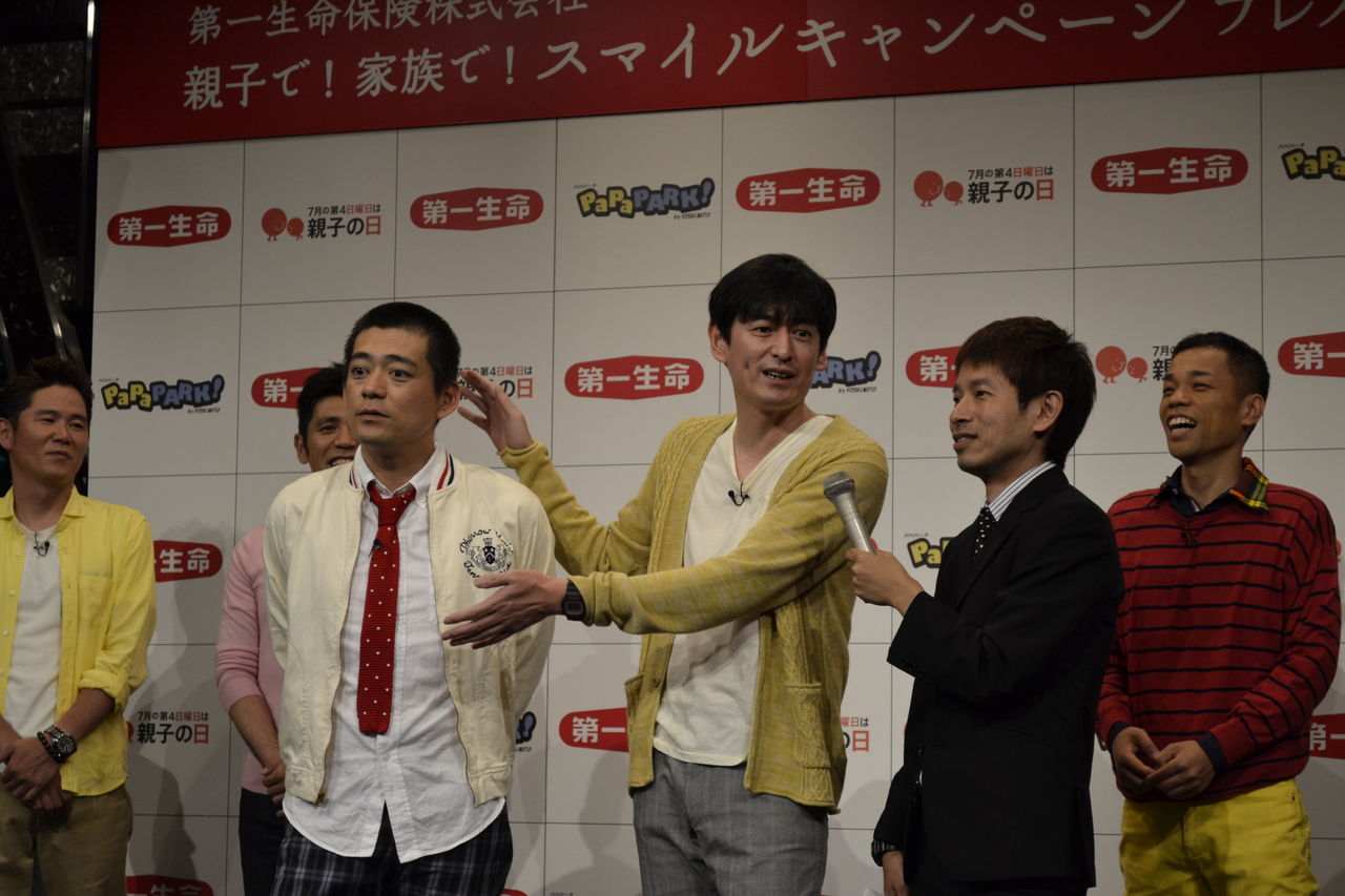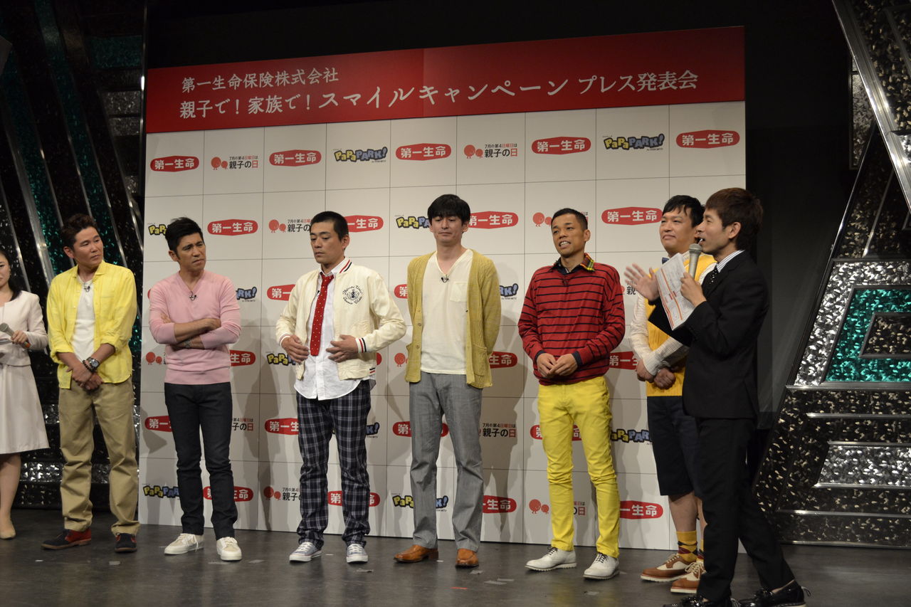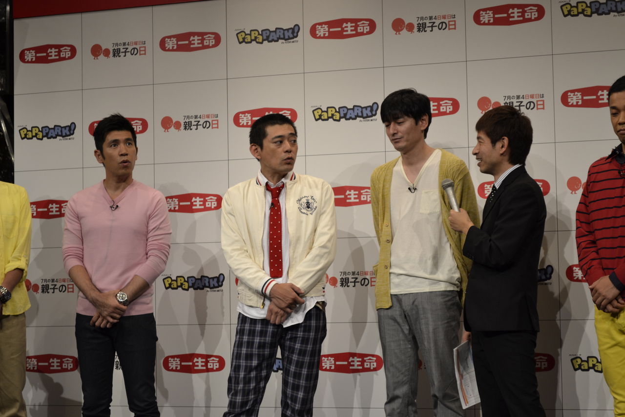 同キャンペーンの記者発表が行われ、パパ芸人たちが「親子」や「保険」についてトーク。