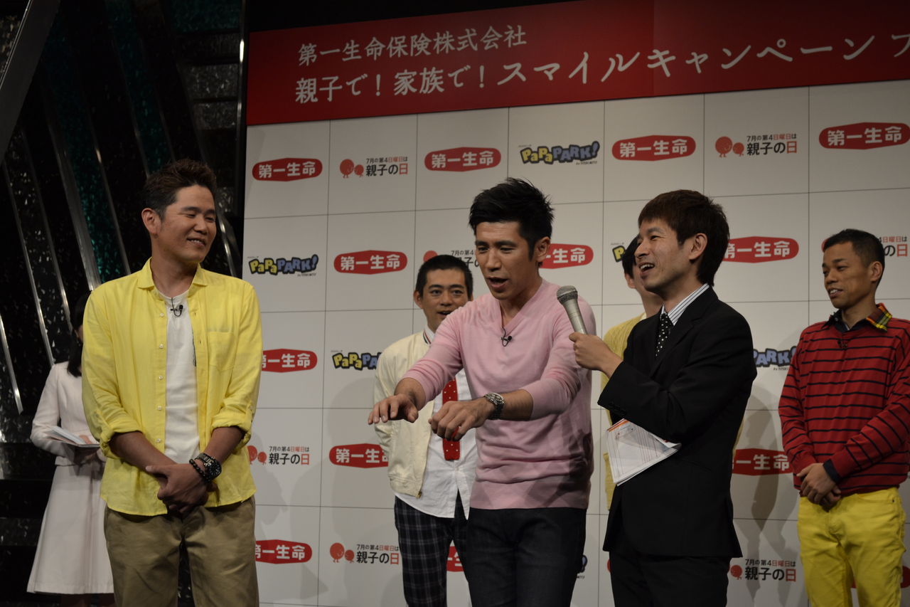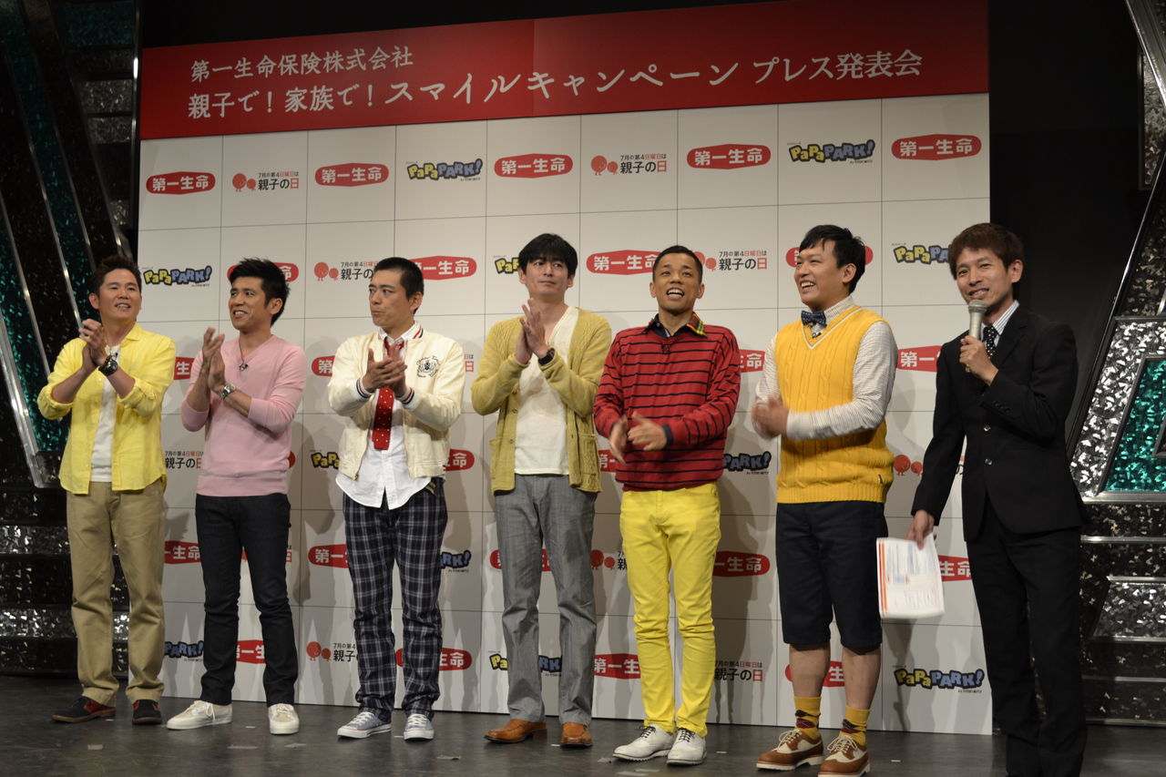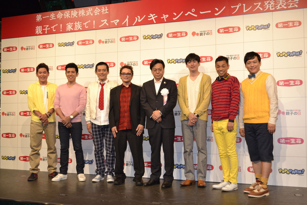 同キャンペーンの記者発表が行われ、パパ芸人たちが「親子」や「保険」についてトーク。