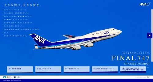 一方、ANAは「THANKS-JUMBO」をテーマに特設ホームページを9月2日にオープン。残り4機となったジャンボジェット機の運航便情報、“里帰りフライト”、キャンペーンなど紹介している。