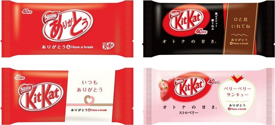 そんな様々な効果がある「ありがとう」行為を促進するようなアイテムが登場しています。ネスレはチョコレート菓子の大定番「キットカット」の日本発売40周年を記念し、新フレーバー含む5商品を特別パッケージの“ありがとうキットカット”として9月上旬から順次販売中。