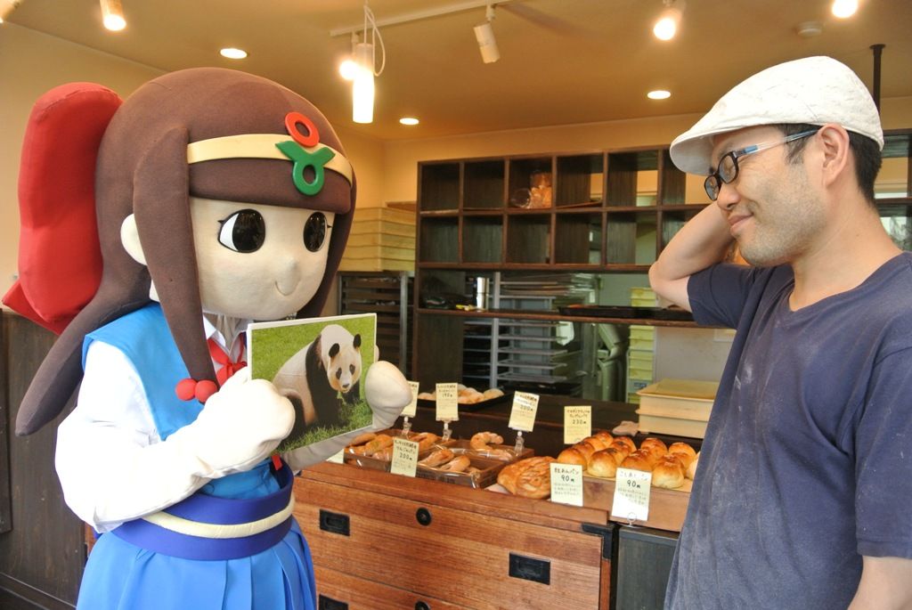 その後、サイコロを転がすと、先のお守りの効果もあってか「6」の目が出た。【萌黄】でぱんだを探すものの、パンではなく次の場所へ。【かくれんぼ】では、そのパンダがスイーツでもないのがわかって移動。【木戸池】の公園でしばし休憩し、今後の計画を立てる。喫茶店【ピノ】にあった地元紙『ぱーぷる』を読むと、パンダを発見!!
