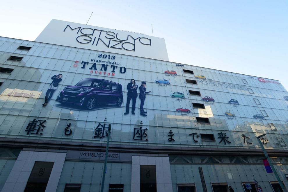これまでの松屋銀座の壁面広告といえば、自動車でいえばアウディやジャガーといった高級メーカーのみだった。