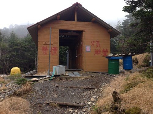 トイレはテント場を少し歩いた先にあるので避難小屋からはちょっと遠いが、夏場の臭いなどを考えるとこの距離はしょうがないのかもしれない。