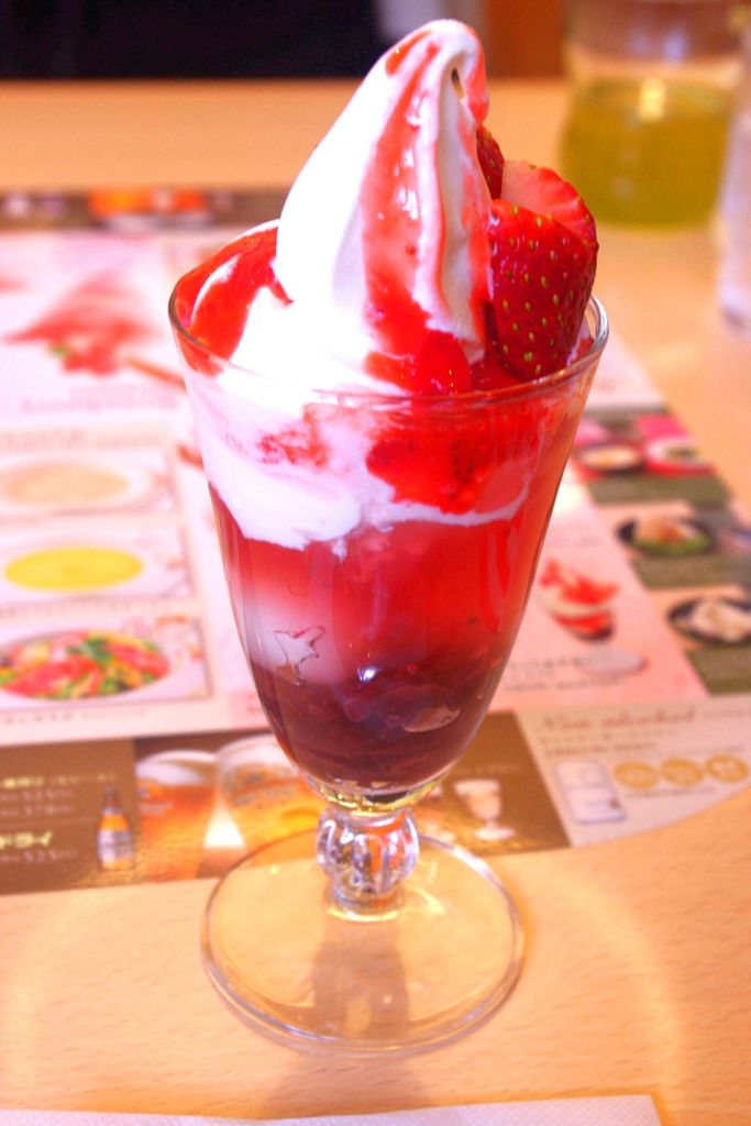 調子に乗って、冬の限定メニューのひとつである「いちごとあずきのミニソフト」も食べてみた。