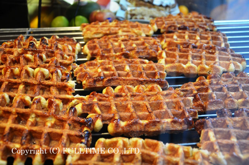 もう1つのワッフルは「リエージュワッフル」です。ワッフルの生地にザラメのような砂糖が入っており、歯ごたえが少し固めです。こちらも、ブリュッセルの街でよく売られており、スーパーで販売されるワッフルで多いタイプ。最近は、ブリュッセルワッフルとリエージュワッフルの両方を取り扱うお店も見られます。“食べ比べ”もオススメ。