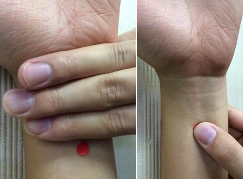 小指側の手首の内側部分にある骨とスジの間の窪みがツボになる。ある程度の力を入れてグリグリと押すように刺激すると、精神状態を落ち着かせる効果があり緊張をほぐすことが出来る。