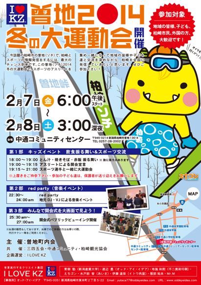 まったく同じ地名を持つこの町内としては、これは一緒に盛り上がるしかない!と、地元ではオリンピックの開会式に合わせて、「曽地2014冬の大運動会」を開催するという。