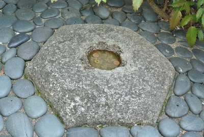 広大な平安京の都、そのど真ん中に位置するのが、六角堂にある「へそ石」という説がある。境内にあるへそ石も六角形で、石の真ん中にくぼみがある。へそは人体に例えると、身体の中心部分。同様に、京のへそといわれるのが六角堂のへそ石というわけだ。