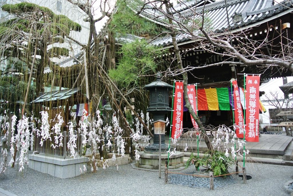 その他にも、六角堂は見どころが多い。用明天皇2年(587年)創建の六角堂は平安京が遷都する前からあり、六角堂の鐘楼が六角通をはさんだ南側にあるのは有名。また、境内には鳩がとても多く、餌まで売られている。人なれした鳩は餌を手にした瞬間、いっせいに近寄ってくる様子は、ヒッチコックの名作映画『鳥』のようだ。一方で、「鳩みくじ」というかわいいおみくじなどもあり、縁結びにもご利益がある。