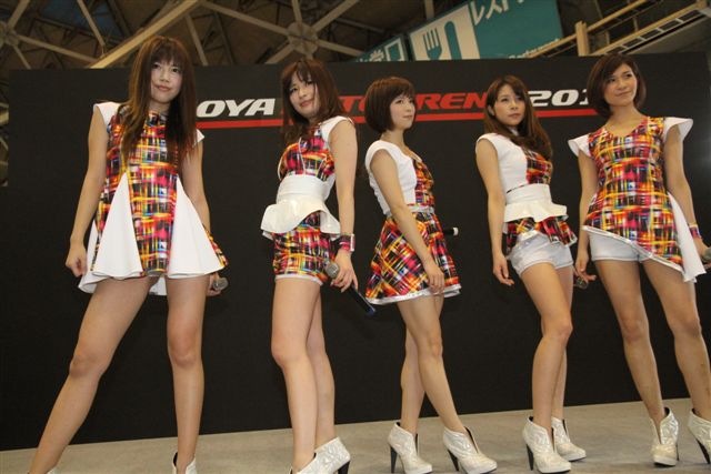 館内では多種多様なカスタムーやスポーツカーが一堂に並び車好きな来場者で賑わっている中、特設ステージにてセクシーな衣裳を着た5人組ユニットREGIIIIINA!!(レジーナ)が登場。