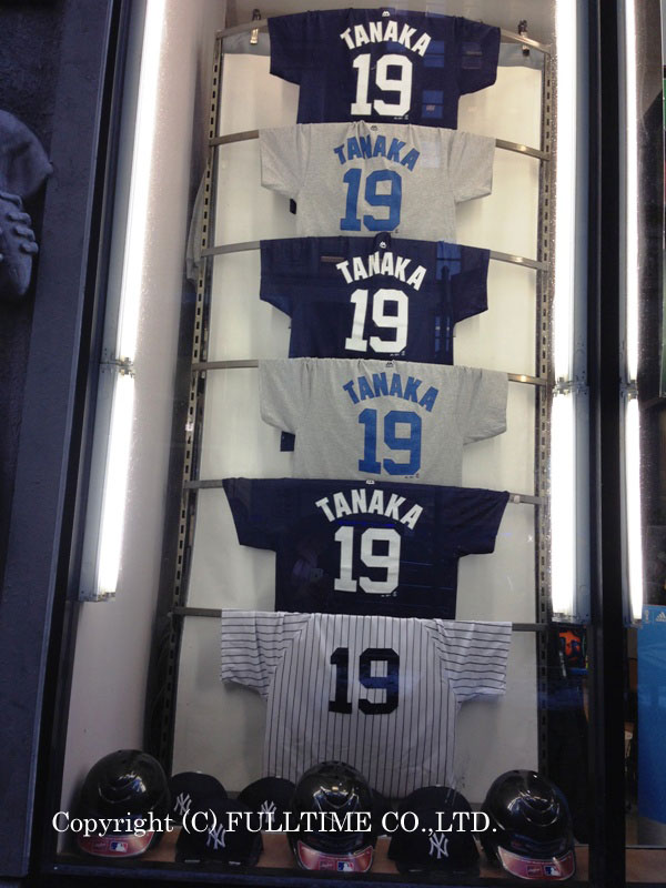 たとえば、ヤンキースのグッズを販売するオフィシャルショップ。タイムズスクエア周辺などにいくつか店舗がありますが、そのショーウィンドゥに早くも「TANAKA 19」のユニフォームやTシャツが堂々と飾られていました。店内に入るとこちらが日本人だとさっそくわかったようで、スタッフが「TANAKA?」とたずねてきました。「いやちょっと違う…」と言いかけたところで「ICHIRO?」とも。